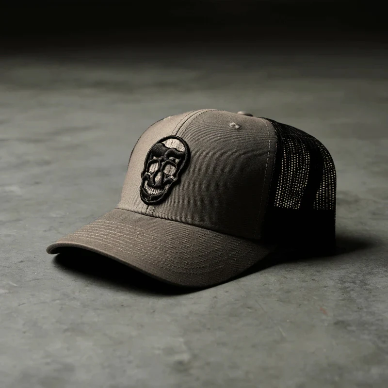 Made from pure cotton, the Gymreapers trucker hat has an embroidered skull on the front, button and eyelet detail on top, and 6 different color options to match your style.Â